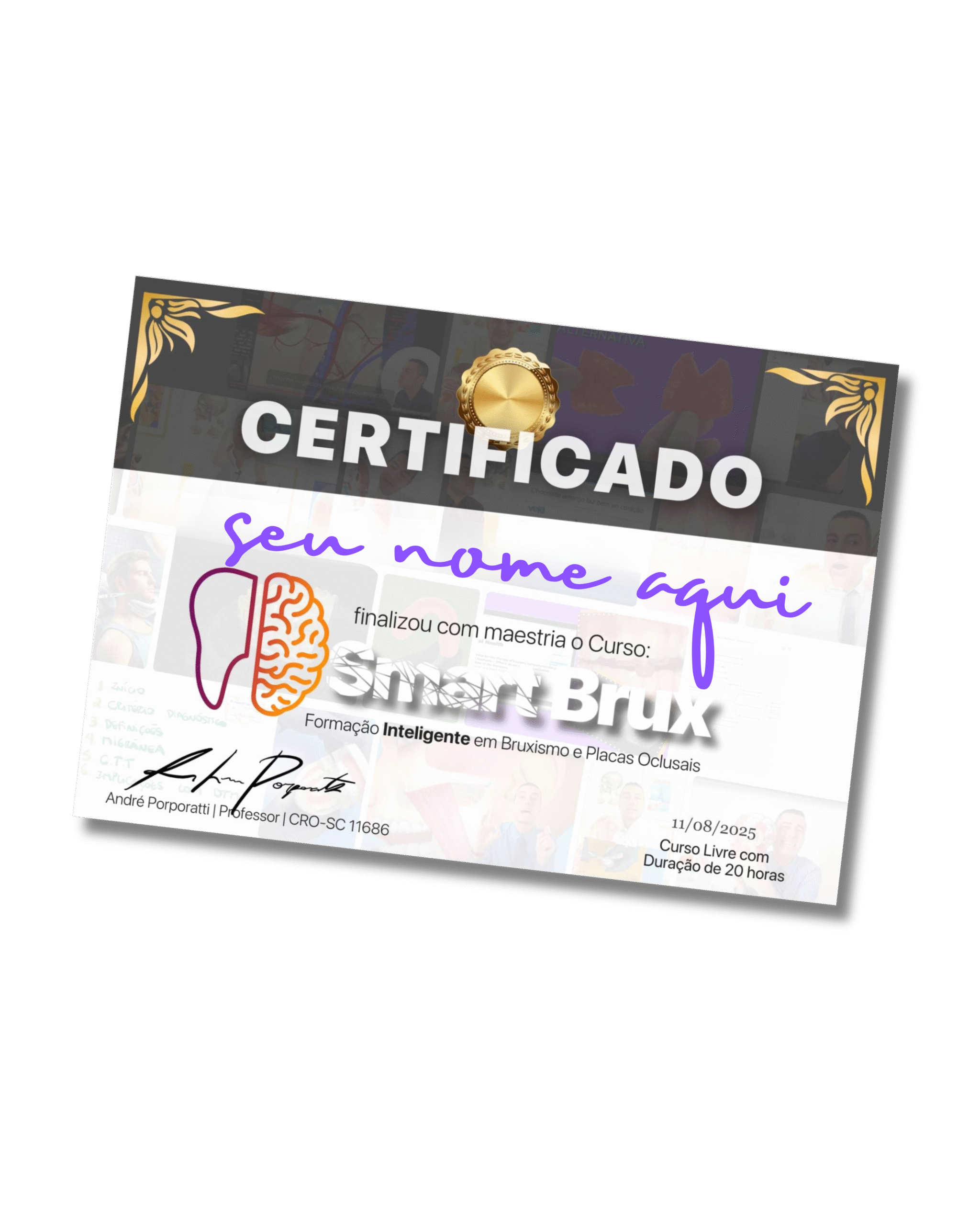Com o método exclusivo do Prof. André Porporatti, você aprende exatamente quando, como e por que usar cada tipo de placa em cada tipo de bruxismo, sem achismos, sem fórmulas genéricas e com total segurança clínica.